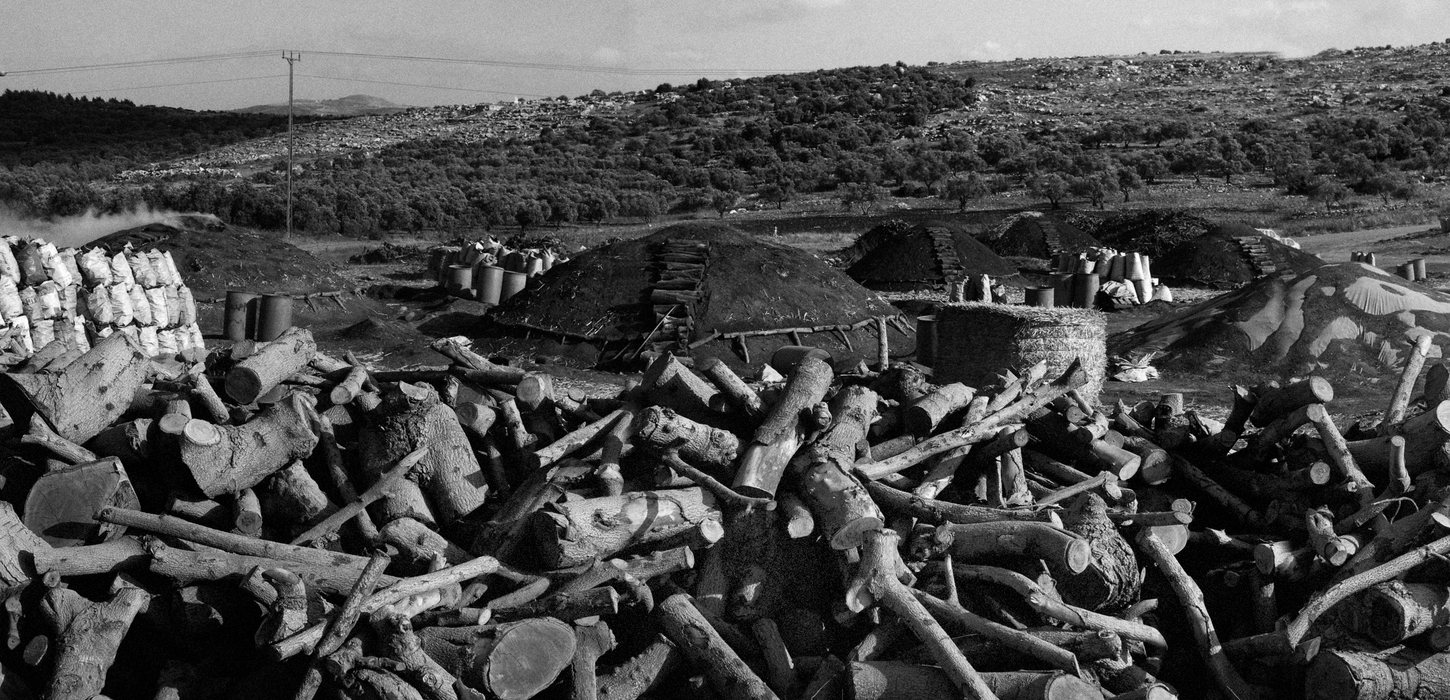In the Palestinian village Ya'bad, in the North of Samaria, the tradition of making coal is still preserved. The coal is produced primarily of snippets of tree trunks and branches from citrus trees, covered with straw and sand and burned slowly for several weeks.