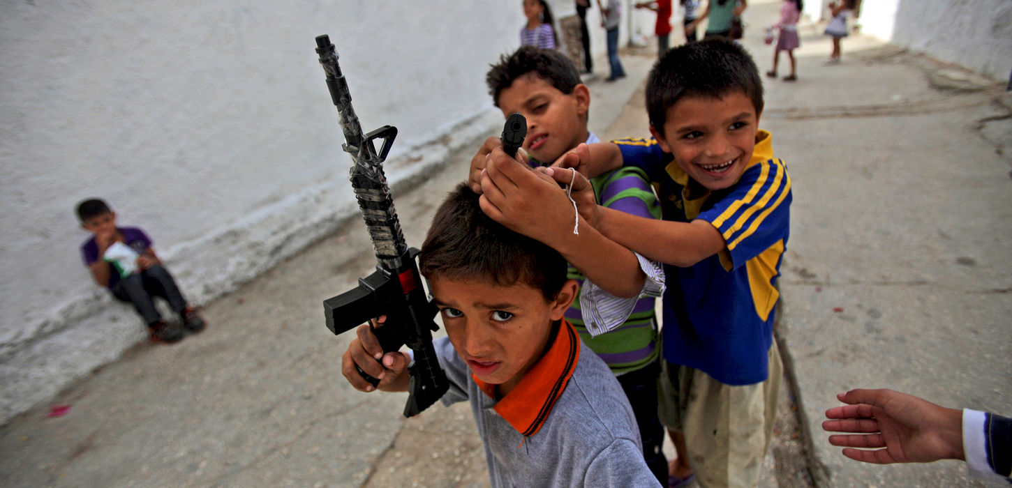In the alleys of a refugee camp in the West Bank, Palestinian children find innovative ways of playing games, due to the absence of any structured playgrounds.