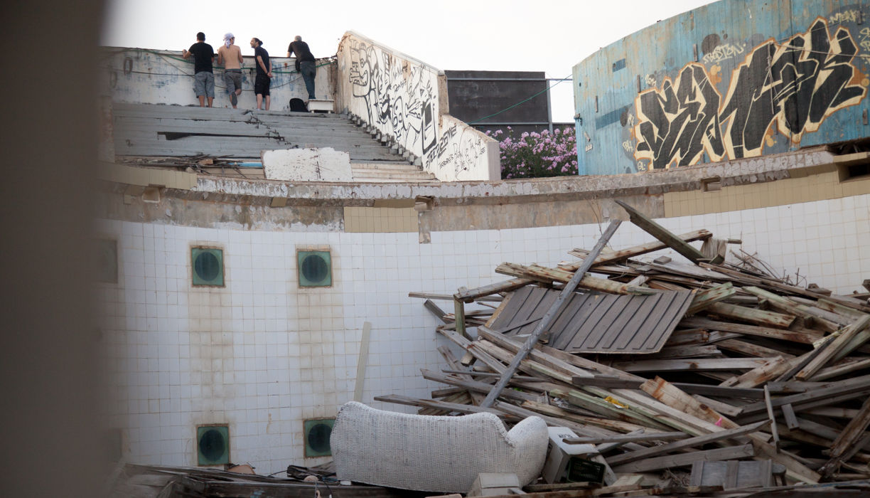Scenes from what was once the Dolphinarium on the Tel Aviv beach, after approval of the plans to demolish the building and complete the boardwalk.
