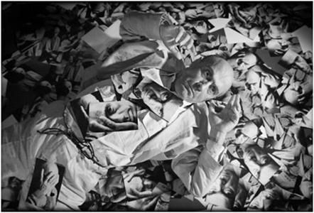 The actor Salim Dau in a moment of the play Album, which was staged at the Acre Festival 2005. The hero of Album is a person who in his latter years looks back at his life and tries unsuccessfully to classify the different moments, the more and less significant ones. Each memory turns into a picture, and each picture into a theatrical moment. According to the authors of the play, Chaim Yafim Barvalet, Eyal Landsman, and Amir Nizar Zoavi, it seeks to examine the elusiveness of the moment and of life.