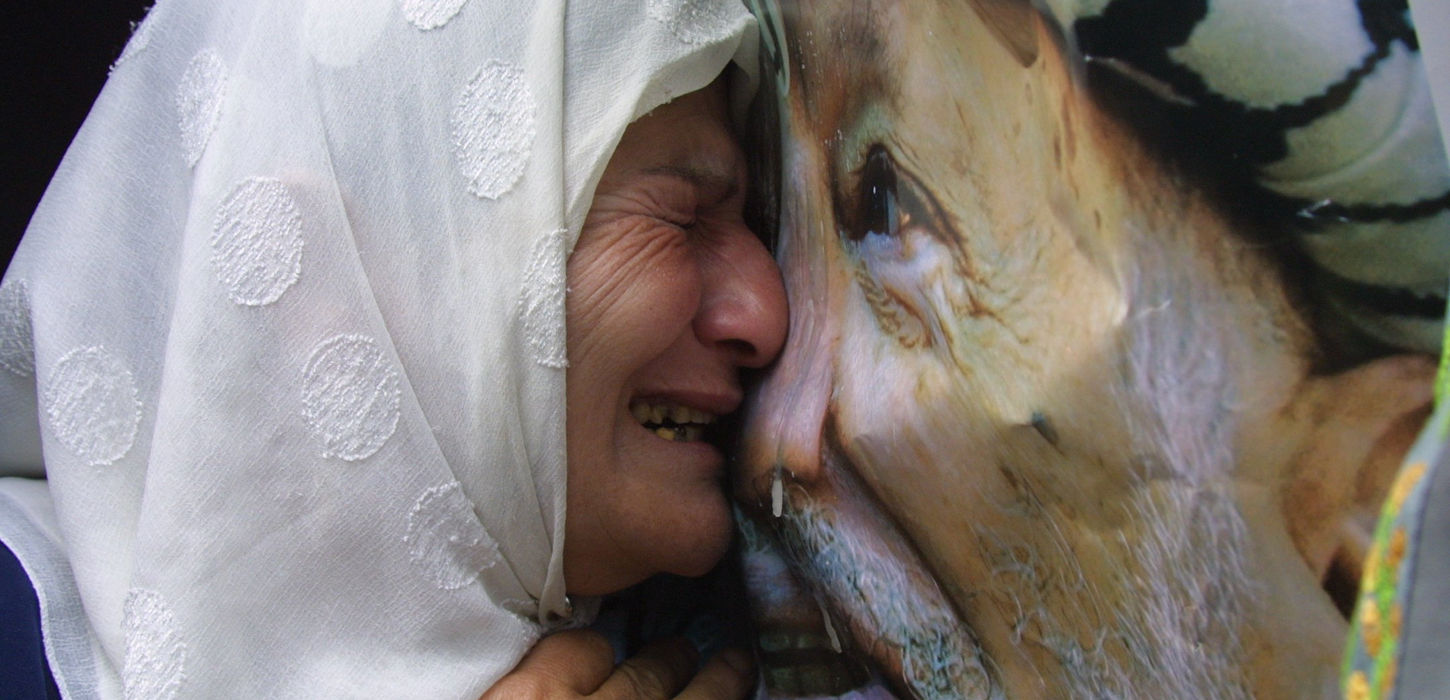 Yasser Arafat, leader of the Palestinian people and head of the Palestine Liberation Organization from 1969 till his death. In November 2004 the head of the Palestinian Authority, Yasser Arafat, underwent health deterioration and was taken to a hospital in Paris. After long days there in a state of clinical death, Arafat’s death was officially announced on 11 November 2004. The funeral ceremony was held in Cairo and immediately thereafter he was brought to Ramallah for burial in the Mukata compound on 12 November. In the picture—a woman laments the death of Arafat.