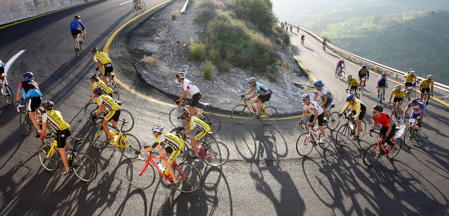 The “Golden Ring” cycling road race along a 120 kilometer route. The cyclists are seen climbing the road from Hamat Gader to the southern part of the Golan Heights.